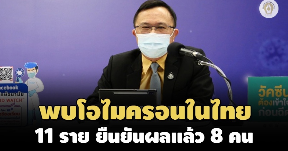 สธ.เผยพบผู้ติดเชื้อโอไมครอนใน กทม. 9 ราย ต่างจังหวัด 3 ราย รวม 11 ราย ยืนยันแล้ว 8 ราย อีก 3 รายรอผลยืนยัน ย้ำทั้งหมดเดินทางมาจากต่างประเทศ ยังไม่พบติดเชื้อในไทย