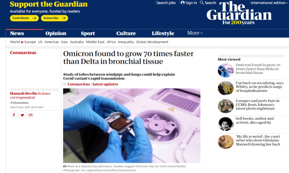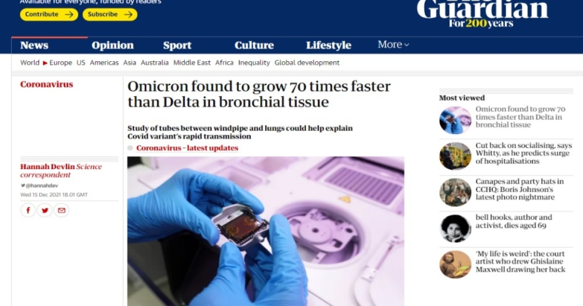 เรียบเรียงจาก:https://www.theguardian.com/world/2021/dec/15/omicron-found-to-grow-70-times-faster-than-delta-in-bronchial-tissue