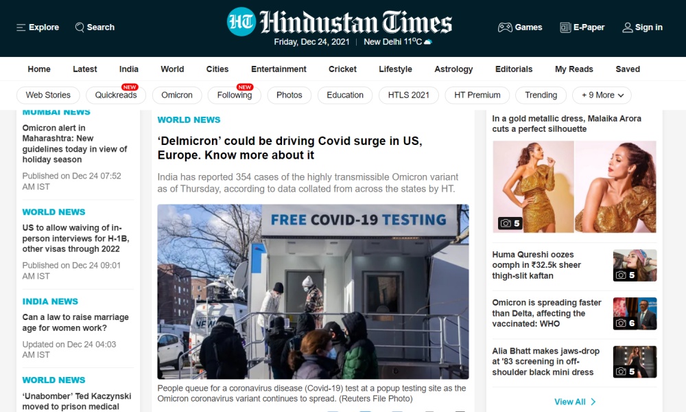 “เดลไมครอน เป็นการผสมของการเกิดขึ้นจากโควิดเดลต้าและโอไมครอนทั้งในทวีปยุโรปและในสหรัฐฯ ทำให้เกิดซึนามิขาดเล็กของจำนวนผู้ติดเชื้อ” นพ.ชาแชงค์ โจชิ หนึ่งในทีมงาน กล่าวในหนังสือพิมพ์ฉบับหนึ่งหลังจากที่ไวรัสโควิดสายพันธุ์โอไมครอนนั้นได้ระบาดปใน 89 ประเทศทั่วโลกแล้ว