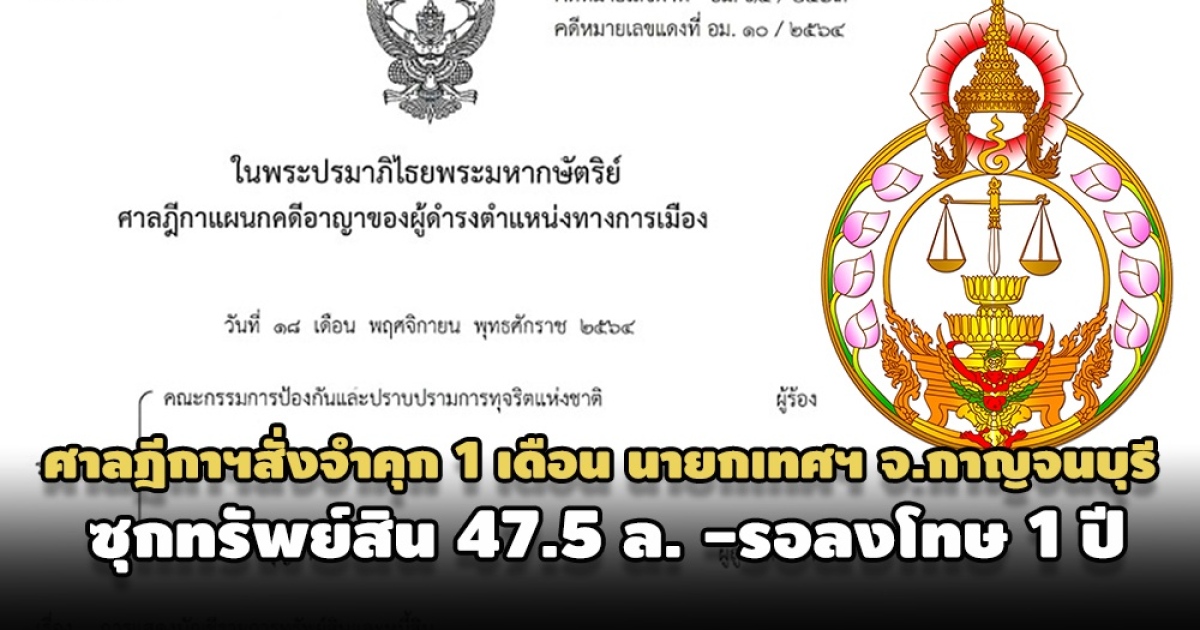 ขาดอายุความ ! ศาลฎีกาฯยกคำร้อง รองนายกเทศฯ จ.กาญจนบุรี ไม่ยื่นบัญชีฯ ป.ป.ช. 3 ครั้ง