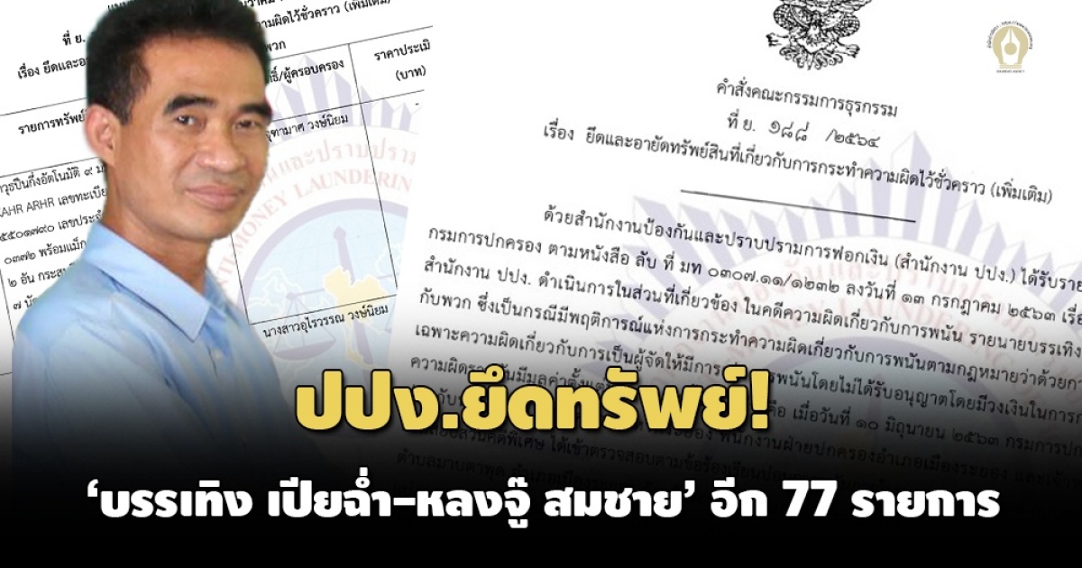 เปิด 3 คำสั่ง ปปง.ยึดอายัดทรัพย์ ‘บรรเทิง เปียฉ่ำ-หลงจู๊ สมชาย’พวก 810.9 ล้าน