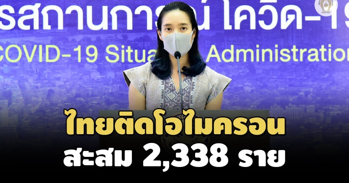 ผู้สื่อข่าวรายงานว่าเมื่อวันที่ 5 ม.ค. 2565 พญ.สุมนี วัชรสินธุ์ ผู้อำนวยการสำนักสื่อสารความเสี่ยงและพัฒนาพฤติกรรมสุขภาพ กรมควบคุมโรค กระทรวงสาธารณสุข ในฐานะผู้ช่วยโฆษกศูนย์บริหารสถานการณ์โควิด (ศบค.) รายงานสถานการณ์การแพร่ระบาดของโควิดโอไมครอนข้อมูลวันที่ 1 พ.ย. 2564-4 ม.ค. 2565 สะสม 2,338 ราย กระจายไป 55 จังหวัด ครึ่งหนึ่งเป็นผู้ติดเชื้อเดินทางจากต่างประเทศ และอีกครึ่งหนึ่งเป็นผู้ติดเชื้อจากกลุ่มแรก โดยจังหวัดที่พบการติดเชื้อและระบาดภายในจังหวัด ได้แก่ กรุงเทพมหานคร กาฬสินธุ์ ชลบุรี ร้อยเอ็ด ภูเก็ต และสมุทรปราการ