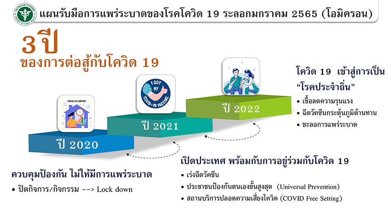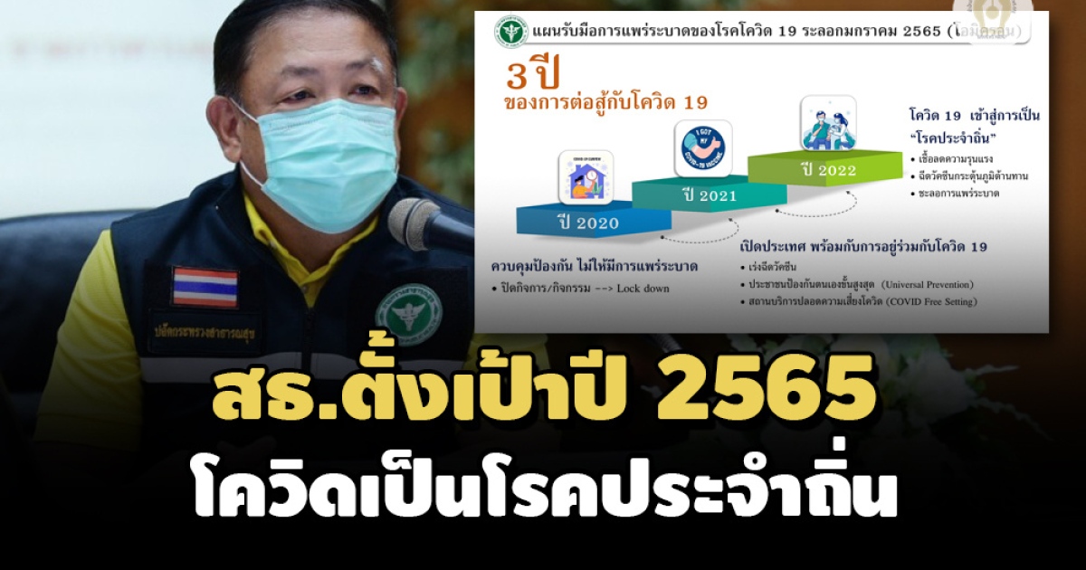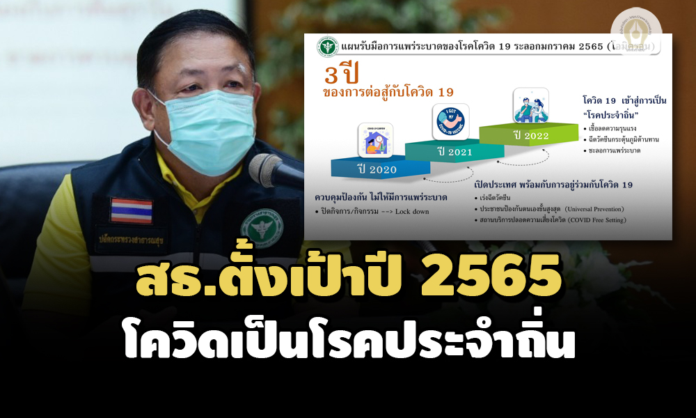 ปลัด สธ.เผย กรมควบคุมโรคตั้งเป้าปี 2565 ประกาศให้โควิดเป็นโรคประจำถิ่น เหตุเชื้อลดความรุนแรง ฉีดวัคซีนมีภูมิคุ้มกัน และมาตรการสาธารณสุขชะลอการระบาดได้เป็นอย่างดี