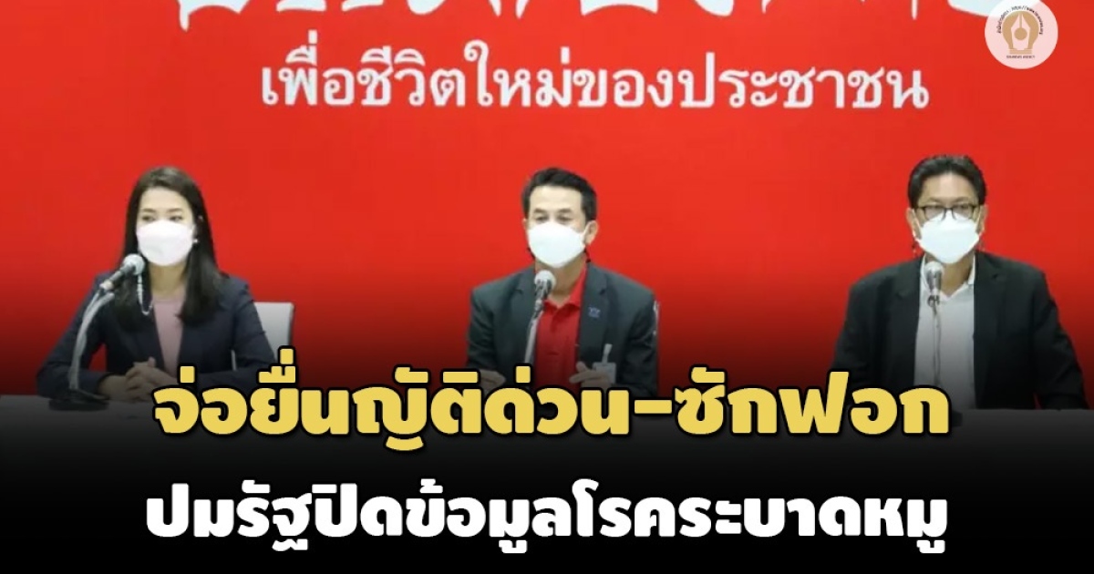'เพื่อไทย' จ่อใช้เวทีสภายื่นญัตติด่วน-กระทู้-ซักฟอก จี้นายกฯ-รมว.เกษตรฯ-อธิบดีปศุสัตว์รับผิดชอบ ปมปกปิดข้อมูลโรคระบาดอหิวาต์แอฟริกาในสุกรซัดไร้ความรับผิดชอบ ไม่สนความเดือดร้อนประชาชน เล็งยื่น ป.ป.ช.เอาผิดซ้ำ