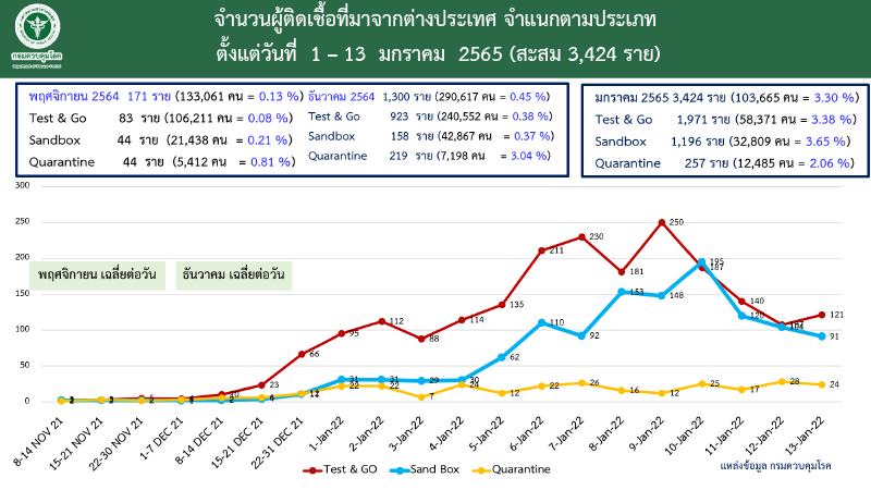 ส่วนผลการตรวจ ATK ถึงวันที่ 13 ม.ค.2565 มีการตรวจไปแล้ว 116,906 ราย มีรายงานผลวกติดเชื้อ 2,719 ราย