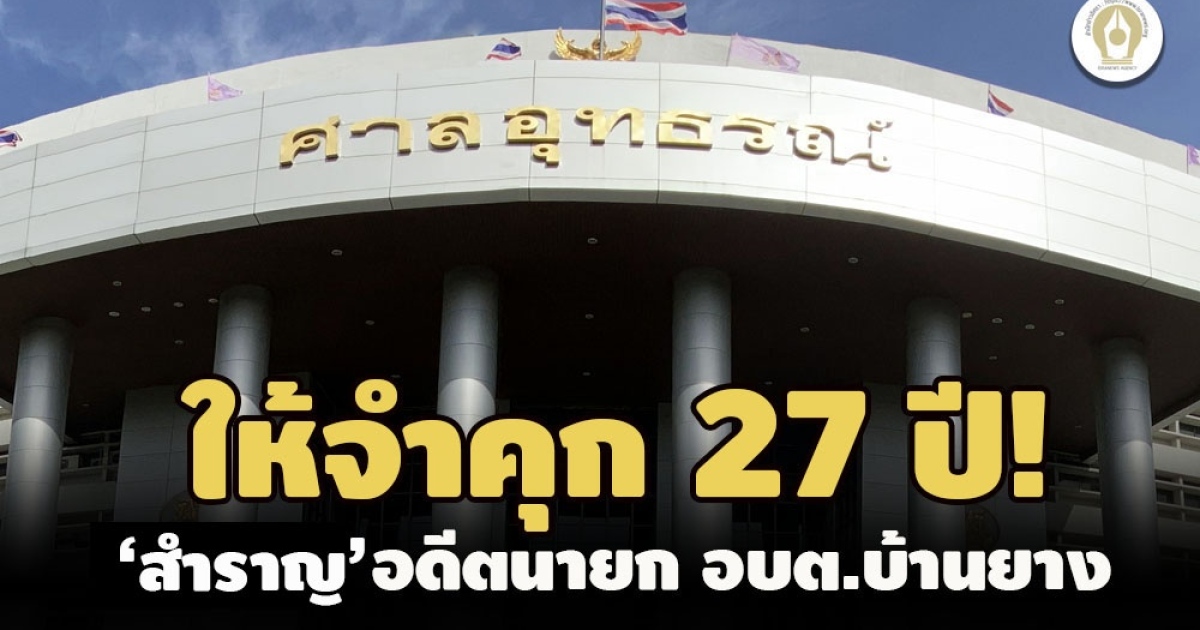 ป.ป.ช. เผยแพร่ผลความคืบหน้าคดีกล่าวหา 'สำราญ ทับยาง' อดีตนายก อบต.บ้านยาง นครปฐม ทุจริตโครงการจัดงานพิธีเฉลิมฉลองเนื่องในวันเฉลิมพระชนมพรรษาฯ เรียกรับเงินประโยชน์ตอบแทนอื่นเป็นกรณีพิเศษ (โบนัส) ประจำปี 2551 เลิกจ้างพนง.โดยมิชอบ ล่าสุด ศาลอุทธรณ์ พิพากษาแก้ให้จำคุก 27 ปี พวก 1 ราย โดน 15 ปี 20 เดือน