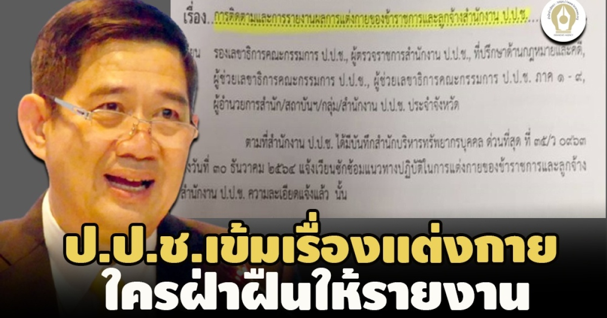 เคร่งวินัย! ‘นิวัติไชย’เลขาฯ ป.ป.ช.ออกหนังสือเวียน แนวทางปฏิบัติการแต่งกายของ ขรก.-ลูกจ้างในองค์กร ให้ผู้บังคับบัญชาทุกระดับ สอดส่อง พบใครฝ่าฝืนให้ตักเตือนเป็นหนังสือ รายงานผู้ช่วยฯ รองเลขาฯ ภายในวันที่ 1 แล้วรวบรวมส่งต่อภายในทุกวันที่ 5 ของเดือน ทั้ง ทรงผม เครื่องแบบ ด้านหนึ่งถูกวิจารณ์ กำชับทำงานให้มีประสิทธิภาพจะดียิ่งขึ้น