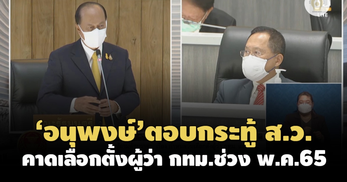 ผู้สื่อข่าวรายงานว่า เมื่อวันที่ 31 ม.ค.2565 พล.อ.อนุพงษ์ เผ่าจินดา รมว.มหาดไทย ตอบกระทู้ถามของนายวันชัย สอนศิริ สมาชิกวุฒิสภา ถึงการจัดการเลือกตั้งผู้ว่าราชการกรุงเทพมหานคร และสมาชิกสภากรุงเทพมหานคร (ส.ก.) รวมถึงการจัดการเลือกตั้งนายกเมืองพัทยา ว่า ก่อนหน้านี้กระทรวงมหาดไทย โดยสำนักทะเบียนกลางได้ประกาศจำนวนราษฎรใหม่แล้วเมื่อวันที่ 18 ม.ค.ที่ผ่านมา ในขณะนี้ทราบมาว่าสำนักงานคณะกรรมการการเลือกตั้ง (กกต.) ได้แจ้งให้ กทม.และพัทยา ได้แบ่งเขตสมาชิกและแจ้งกลับมาที่ กกต.วันที่ 18 ก.พ. ก็สรุปว่ามีการทำ ไม่ได้นิ่งเฉย เพื่อให้พร้อมที่จะเลือกตั้งได้