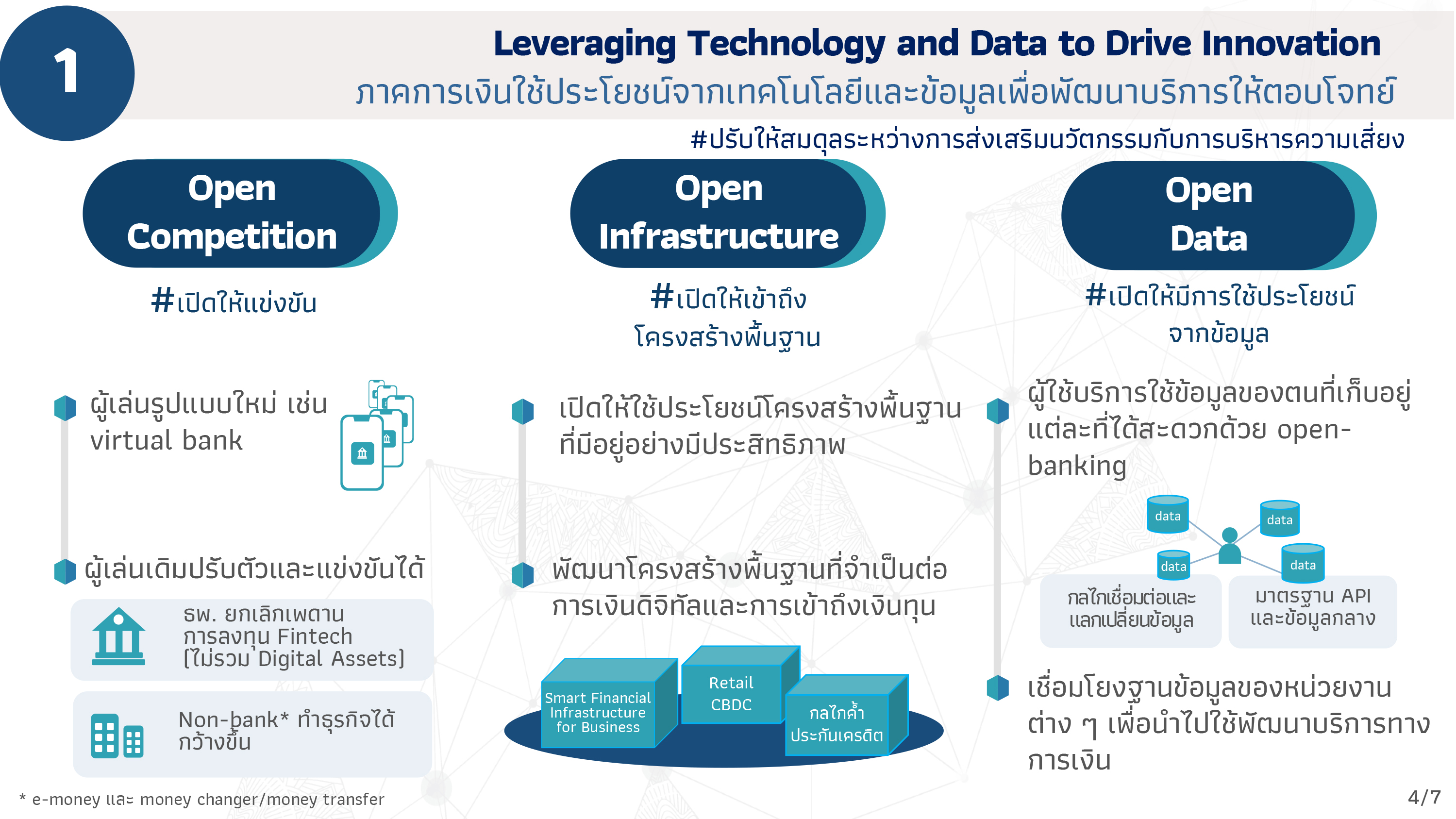 1.การเปิดโอกาสให้ภาคการเงินใช้ประโยชน์จากเทคโนโลยีและข้อมูล ภายใต้หลักการ 3 Open ได้แก่