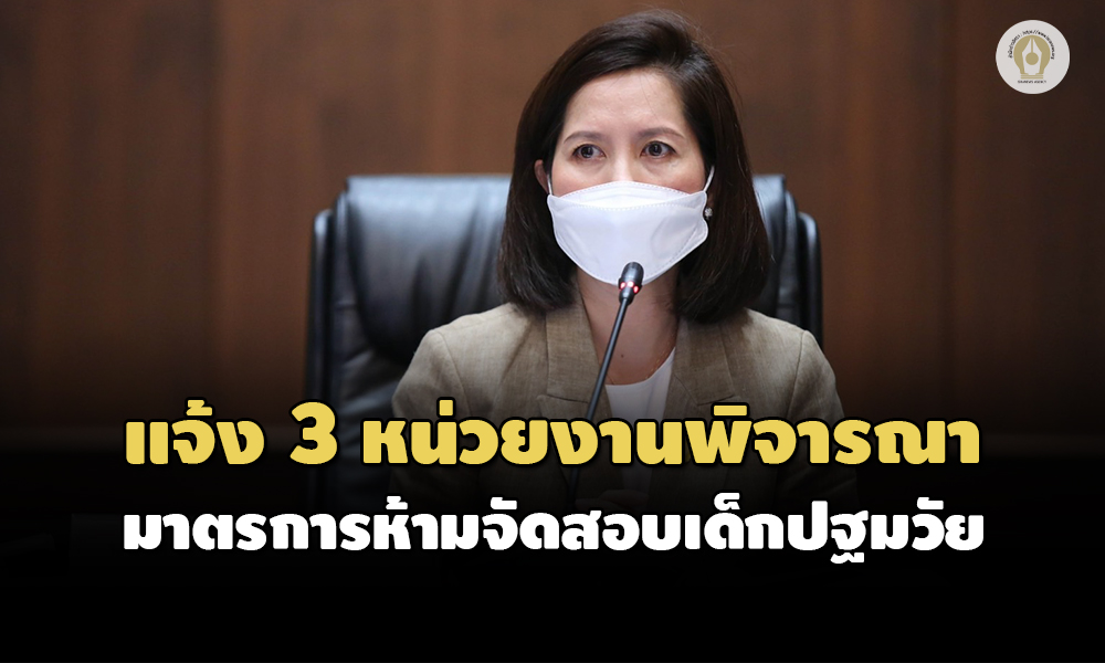 โดยที่ประชุมคณะกรรมการนโยบายการพัฒนาเด็กปฐมวัย ในคราวประชุมครั้งที่ 2/2564 เมื่อวันที่ 29 ก.ย. 2564 มีมติเห็นชอบให้เสนอมาตรการห้ามจัดสอบวัดความสามารถทางวิชาการและสมรรถนะอื่นๆ ของเด็กปฐมวัยในสถานการณ์การแพร่ระบาดของโควิด ต่อศูนย์บริหารสถานการณ์โควิด (ศบค.) ซึ่งขณะนี้ได้สั่งการให้หน่วยงานภายใต้สังกัดกระทรวงศึกษาธิการ ได้แก่ คณะกรรมการการศึกษาขั้นพื้นฐาน และสำนักงานคณะกรรมการส่งเสริมการศึกษาเอกชน พิจารณาดำเนินการตามมาตรการดังกล่าวเรียบร้อยแล้ว