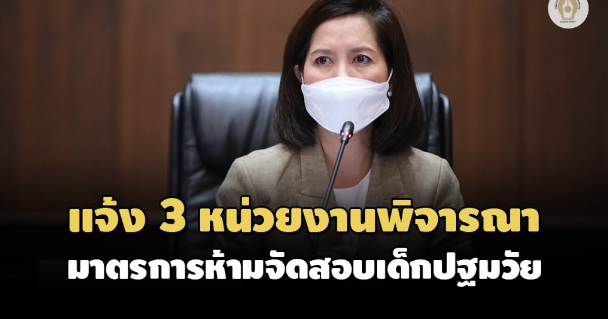 ศธ.ออกหนังสือแจ้ง 'กทม.-มท.-อว.' พิจารณามาตรการห้ามจัดสอบวัดความสามารถทางวิชาการและสมรรถนะอื่นๆ ของเด็กปฐมวัยช่วงโควิด เพื่อให้ปรับใช้ตามความเหมาะสมและครอบคลุม หวังไม่ให้กระทบต่อพัฒนาการของเด็ก