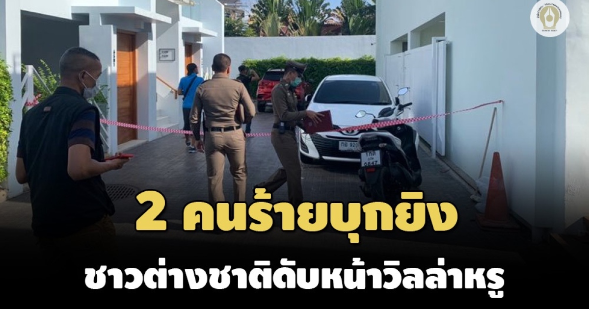 ตำรวจภูเก็ตได้รับแจ้งพบชาวต่างชาติถูกยิงเสียชีวิตหน้าวิลล่าหรูแถวแยกใสยวน ตำบลราไวย อำเภอเมือง กล้องวงจรปิดจับภาพ 2 คนร้ายบุกถล่มรัวยิง