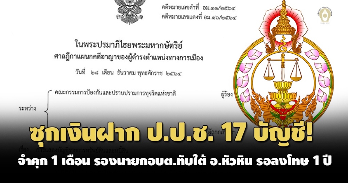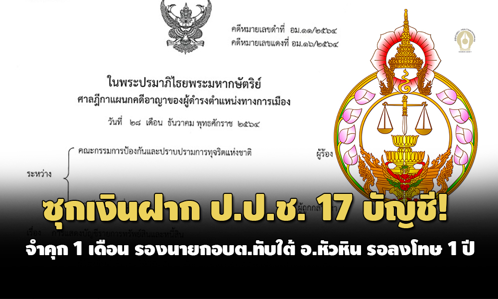 ซุกเงินฝาก 1 บัญชี ป.ป.ช.!ศาลฎีกาฯคุก 1 เดือน รองนายก อบต.ท่าไม้ นครสวรรค์ -รอลงโทษ