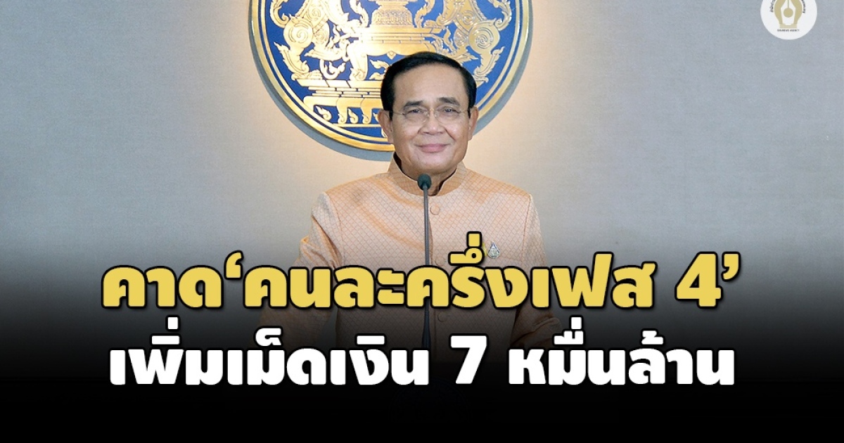นายกฯปลื้มโครงการคนละครึ่งเฟส 4 ช่วยกระตุ้นเศรษฐกิจ หลังมีผู้ใช้สิทธิ์สะสมแล้ว 15.88 ล้านคน ใช้จ่ายสะสม 7 พันล้าน คาด 3 เดือนจากนี้ เพิ่มเม็ดเงินได้อีกเกือบ 7 หมื่นล้าน