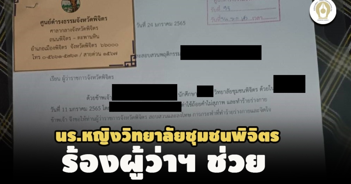 นร.หญิงวิทยาลัยชุมชนพิจิตร ร้องผู้ว่าฯ ผ่านศูนย์ดำรงธรรมช่วยถูกผู้บริหารใช้ถ้อยคำไม่สุภาพทำร้ายร่างกาย หลังมีปากเสียงวิวาทนักเรียนต่างกลุ่ม เผยมีให้อาจารย์มาข่มขู่ถ้าแจ้งความจะได้ไม่คุ้มเสีย โดนเอาคืนจนอยู่กันไม่ได้ ล่าสุดไปแจ้งความลงบันทึกประจำวันเป็นหลักฐานแล้วหลังเบี้ยวนัดไม่มาไกล่เกลี่ยผู้ปกครอง