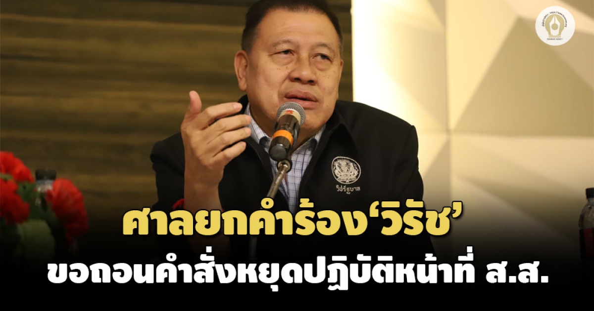 ศาลฎีกาแผนกคดีอาญาของผู้ดำรงตำแหน่งทางการเมือง ยกคำร้อง 'วิรัช รัตนเศรษฐ' ขอถอนคำสั่งหยุดปฏิบัติหน้าที่ ส.ส. คดีสนามฟุตซอลโคราช ชี้ไม่มีเหตุเปลี่ยนแปลงคำสั่งเดิม