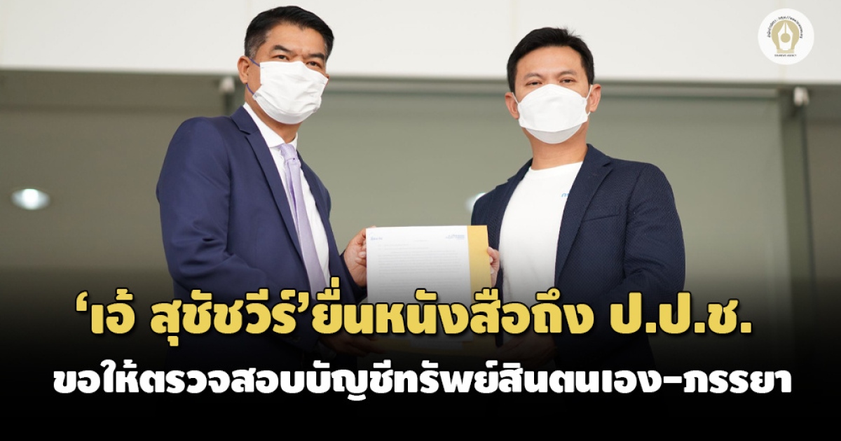 ‘เอ้ สุชัชวีร์’ ยื่นหนังสือถึง ป.ป.ช. แสดงความบริสุทธิ์ใจ ขอให้ตรวจสอบบัญชีทรัพย์สินตนเอง-ภรรยา ยันสมัยนั่งอธิการ สจล. ทำหน้าที่ด้วยความซื่อสัตย์ ไม่ทุจริต ไม่ร่ำรวยผิดปกติ