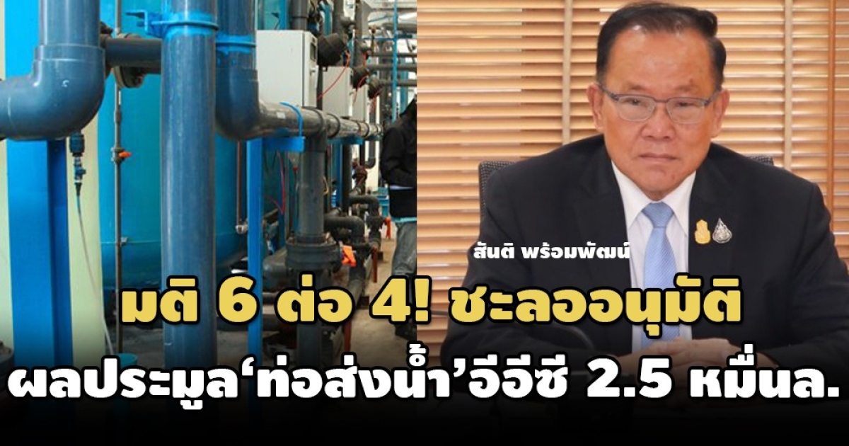 ‘บอร์ดที่ราชพัสดุ’ มีมติเสียงข้างมาก 6 ต่อ 4 ชะลอการอนุมัติผลประมูล ‘ท่อส่งน้ำดิบ’ อีอีซี 2.5 หมื่นล้าน ระบุขอให้รอคำพิพากษาศาลปกครองก่อน