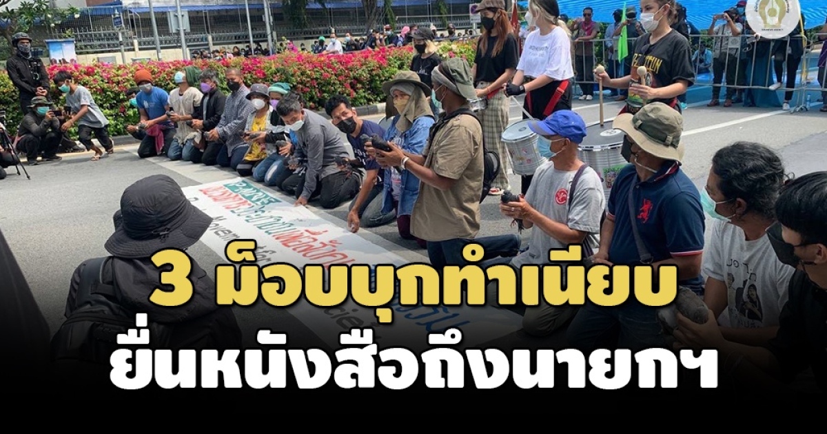 ผู้ชุมนุม 3 กลุ่มรวมตัวบุกทำเนียบฯ ยื่นหนังสือถึงนายกฯ สกท.ทวงมติ ครม.อนุมัติงบฉุกเฉินฯ 2 พันล้านแก้หนี้ ขณะที่เครือข่ายแรงงาน ขอรัฐเยียวยาพิษโควิด ด้านพีมูฟ ออกแถลงการณ์จี้ยกเลิก พ.ร.ก.ฉุกเฉิน