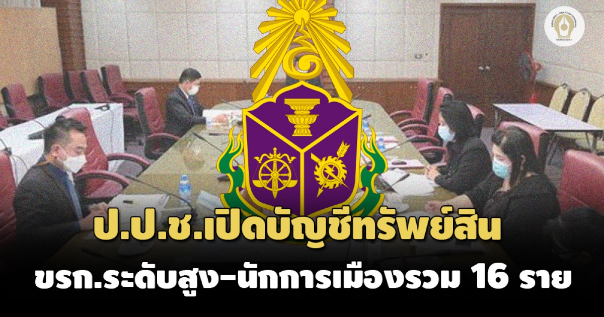 ป.ป.ช.แพร่บัญชีทรัพย์สินผู้ดำรงตำแหน่งระดับสูง 16 ราย มีทั้ง ผบ.ทบ.-ปลัดกระทรวงกลาโหม-อธิบดีกรมราชทัณฑ์ รวมถึงนักการเมือง ‘ถาวร-พุทธิพงษ์’อดีต ส.ส. ‘สุเนตตา แซ่โก๊ะ’ ส.ส.ใหม่ สังกัดพรรครวมพลังประชาชาติไทย