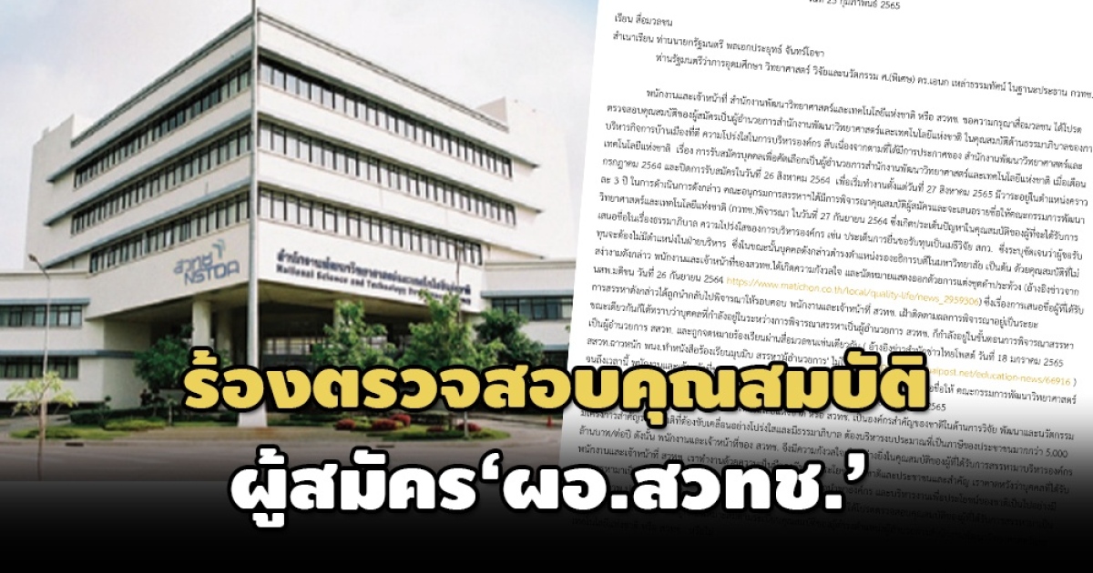 “พนักงานและเจ้าหน้าที่ สวทช. จึงขอให้สื่อมวลชน ได้โปรดตรวจสอบคุณสมบัติของผู้ที่ได้รับการสรรหามาเป็นผู้อำนวยการ สวทช. ว่า มีความถูกต้องเหมาะสมตามระเบียบคุณสมบัติของผู้ดำรงตำแหน่งผู้อำนวยการสำนักงานพัฒนาวิทยาศาสตร์และเทคโนโลยีแห่งชาติ หรือ สวทช. หรือไม่” จดหมายเปิดผนึกของพนักงานและเจ้าหน้าที่ สวทช. ลงวันที่ 25 ก.พ.2565 ระบุ