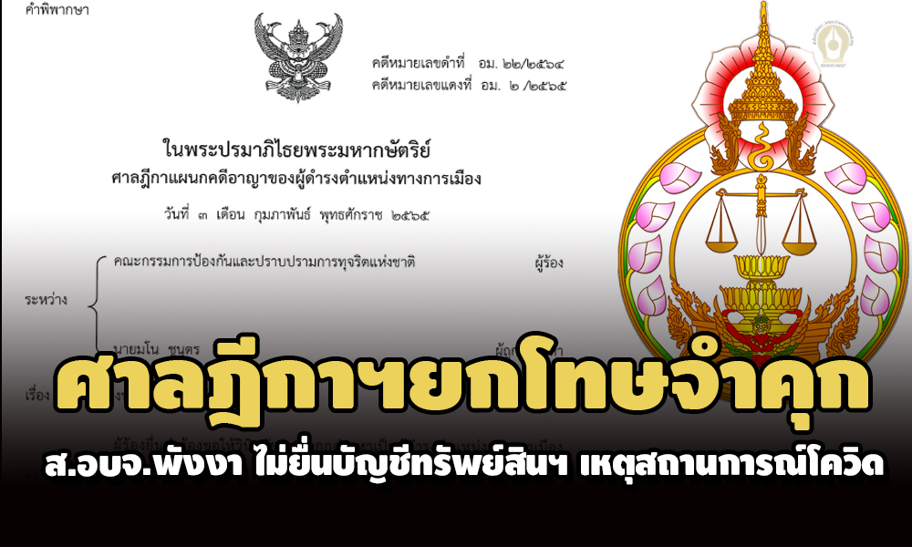 ศาลฎีกาฯ สั่งจําคุก 1 เดือน ปรับ 5,000 บาท ‘มโน ชูนุตร’สมาชิกสภา อบจ.พังงา จงใจไม่ยื่นบัญชีทรัพย์สิน ป.ป.ช. องค์คณะเสียงข้างมาก ยกโทษจำคุก เหตุมีสถานการณ์แพร่ระบาดของโรคติดเชื้อไวรัสโคโรน่า 2019 แนวโน้มรุนแรงต่อเนื่องไม่แน่ชัดว่าจะสิ้นสุดลงเมื่อใด ลงโทษจําคุกระยะสั้นไม่เป็น ปย.แก่สังคม ผู้ถูกกล่าวหา