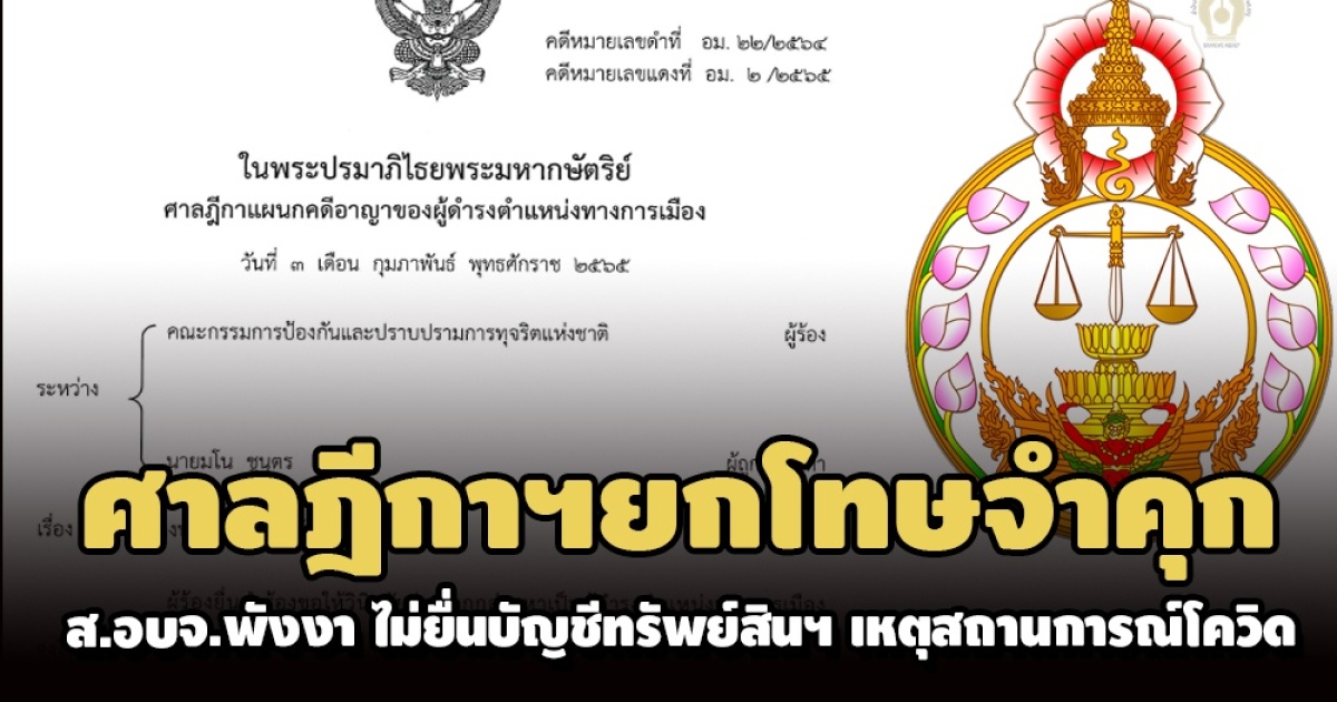 ยื่นบัญชีฯเท็จ! ศาลฎีกาฯคุก 1 เดือน นายก อบต.บางพรม จ.สมุทรสงคราม รอลงโทษ 1 ปี