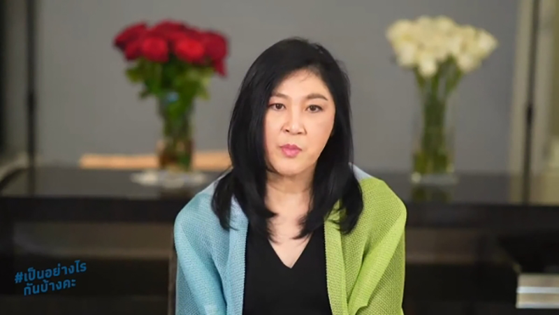 “ฝนตกทางโน้น หนาวถึงคนทางนี้เหมือนกัน แม้ว่าจะทำอะไรไม่ได้ แต่เป็นกำลังใจ และการอยู่เคียงข้างทุกคน เราจะไม่มีวันลืม ความคิดถึงบอกกันทุกวัน แล้วหวังว่าวันหนึ่ง เราจะได้มีโอกาสที่ประเทศไทยจะลืมตาอ้าปาก มีรายได้ที่ดี ดิฉันเองขอเป็นกำลังใจให้ค่ะ” น.ส.ยิ่งลักษณ์ กล่าว