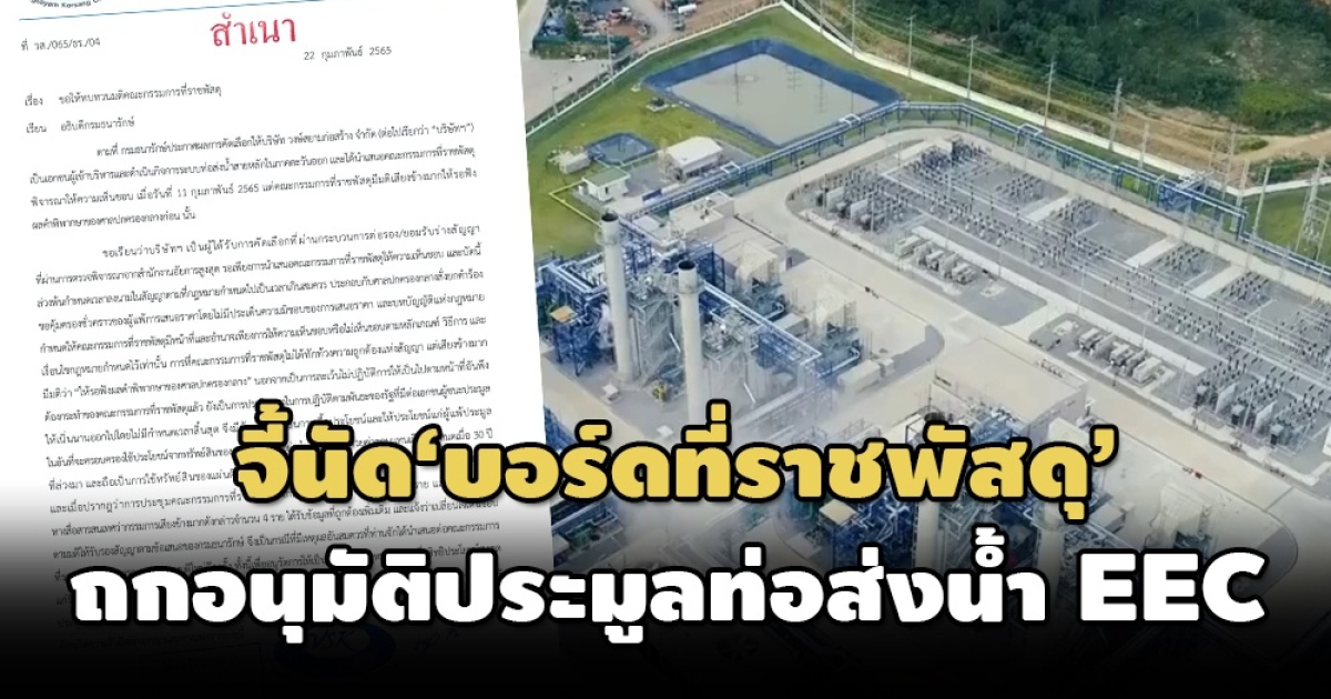 ‘วงษ์สยามก่อสร้าง’ ทำหนังสือถึง ‘ธนารักษ์’ ขอให้นัดประชุม ‘บอร์ดที่ราชพัสดุ’ หลัง 'กรรมการที่ราชพัสดุ' บางราย ขอฟังข้อเท็จจริงเพิ่มเติม ก่อนทบทวนผลประมูลคัดเลือกเอกชนบริหาร 'ท่อส่งน้ำ' EEC 2.5 หมื่นล้าน