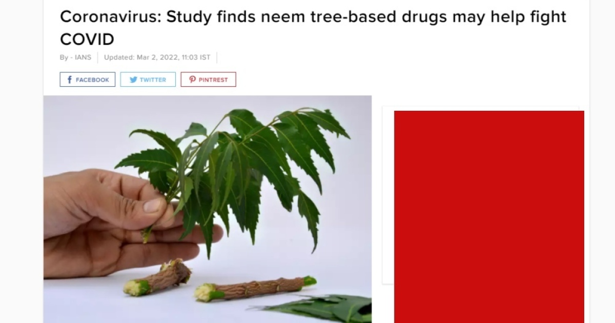 สำนักข่าวอิศรา (www.isranews.org) รายงานสถานการณ์เกี่ยวกับการระบาดของไวรัสโควิด-19 หรือโคโรน่าไวรัสว่า ที่ประเทศอินเดียมีรายงานว่าพบข้อมูลจากทีมนักวิจัยนานาชาติว่าสารสกัดเปลือกของต้นสะเดา ซึ่งเป็นพื้นพื้นเมืองในประเทศอินเดียนั้นอาจจะมีศักยภาพในการช่วยรักษาและลดการแพร่กระจายของไวรัสโควิด-19 ได้