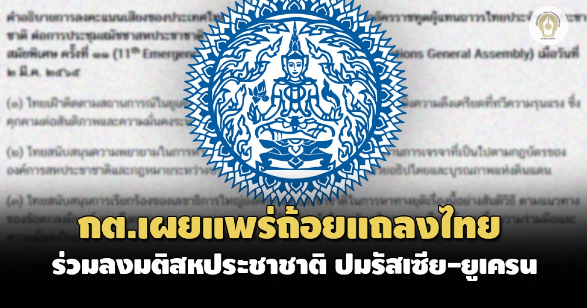 กระทรวงการต่างประเทศ แพร่ถ้อยแถลงผู้แทนถาวรไทยประจำสหประชาชาติ ต่อ ยูเอ็น ท่าทีสงครามยูเครน-รัสเซีย เรียกร้องให้ยุติความรุนแรงและการปะทะทางอาวุธโดยทันที