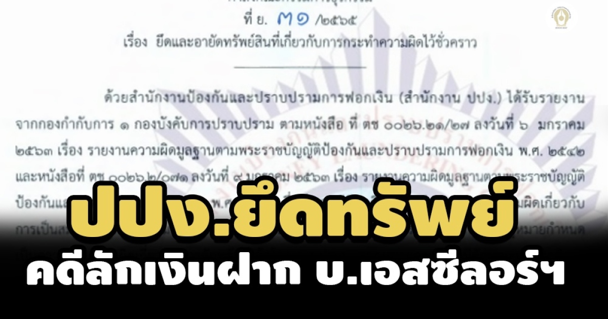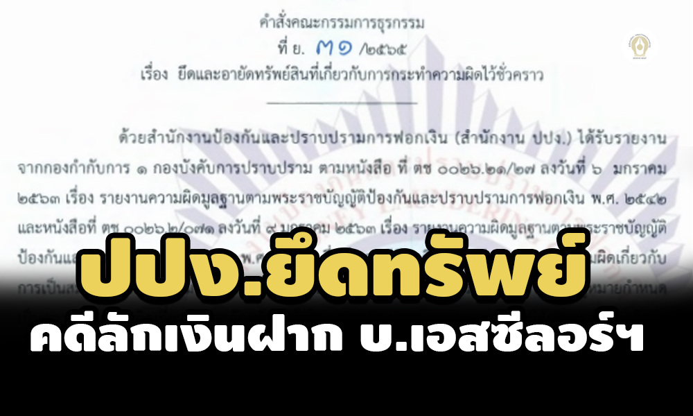ทั้งนี้ คำสั่งคณะกรรมการธุรกรรม ในการ ยึดและอายัดทรัพย์สินมีรายละเอียดดังนี้ ด้วยสำนักงานป้องกันและปราบปรามการพอกเงิน (สำนักงาน ปปง.) ได้รับรายงานจากกองกำกับการ 1 กองบังคับการปราบปราม ตามหนังสือ ที่ ตช 0026.21/27 ลงวันที่ 6 มกราคม 2563 เรื่อง รายงานความผิดมูลฐานตามพระราชบัญญัติป้องกันและปราบปรามการฟอกเงิน พ.ศ. 2542และหนังสือที่ ตช 0026.2/071 ลงวันที่ 9 มกราคม 2563 เรื่อง รายงานความผิดมูลฐานตามพระราชบัญญัติป้องกันและปราบปรามการฟอกเงิน พ.ศ. 2542 ซึ่งเป็นกรณีมีพฤติการณ์แห่งการกระทำความผิดเกี่ยวกับการเป็นสมาชิกอั้งยี่ตามประมวลกฎหมายอาญา หรือการมีส่วนร่วมในองค์กรอาชญากรรมที่มีกฎหมายกำหนดเป็นความผิด ความผิดเกี่ยวกับการลักทรัพย์ ฉ้อโกง ตามประมวลกฎหมายอาญาอันมีลักษณะเป็นปกติธุระและความผิดฐานฟอกเงิน กล่าวคือ