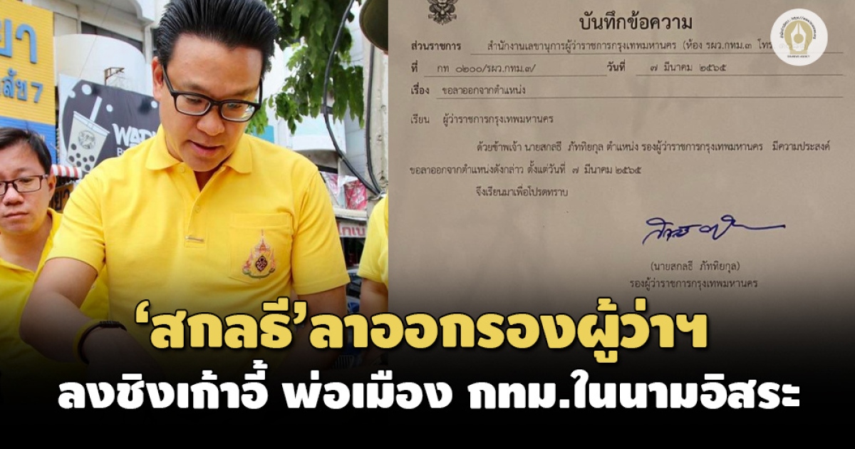 ‘สกลธี ภัททิยกุล’ ยื่นหนังสือลาออกจากรองผู้ว่าฯ กทม. ประกาศตัวลงชิงเลือกตั้งผู้ว่าฯ กทม.ในนามอิสระ