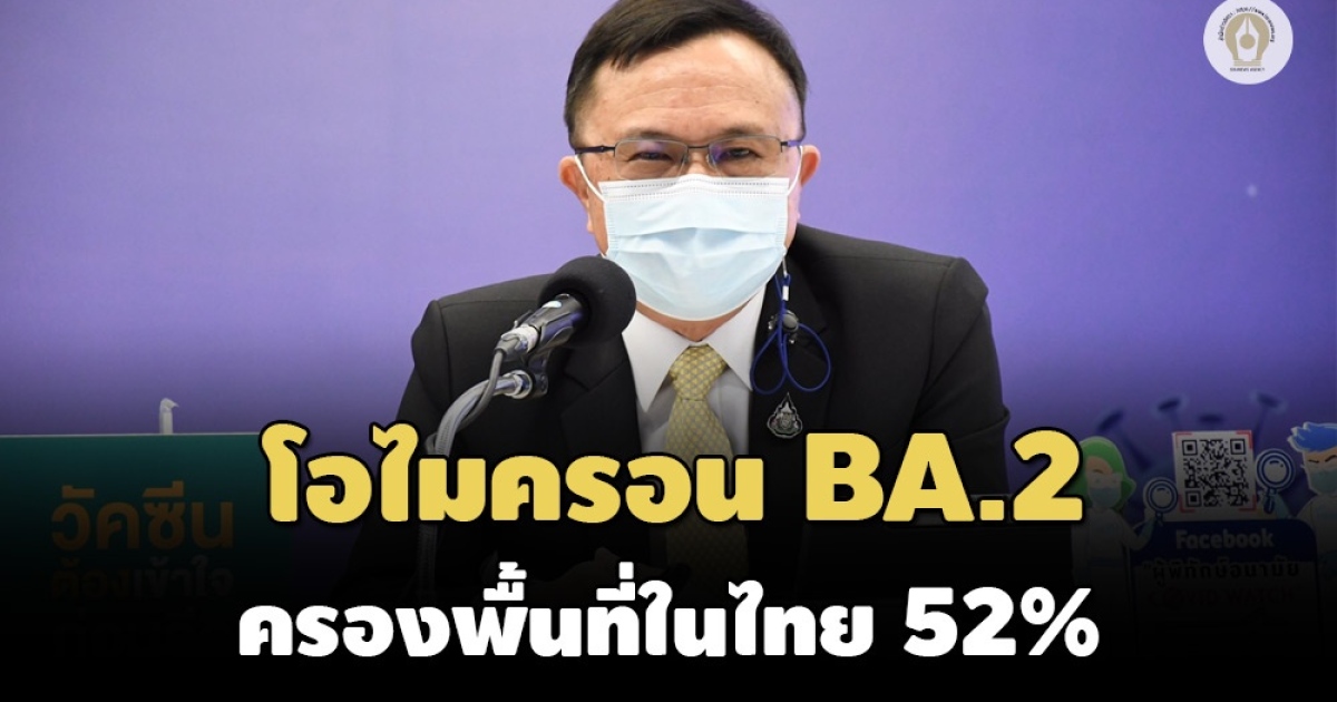 กรมวิทยาศาสตร์การแพทย์ เผยโอไมครอนระบาด 99.6% ส่วนสายพันธุ์ย่อย BA.2 ครองไทยแล้วกว่าครึ่ง แพร่เร็วขึ้น 1.4 เท่า ห่วงต้านวัคซีน-ดื้อยาโมโนโคลนอล แอนติบอดี ใช้รักษาไม่ได้ผล