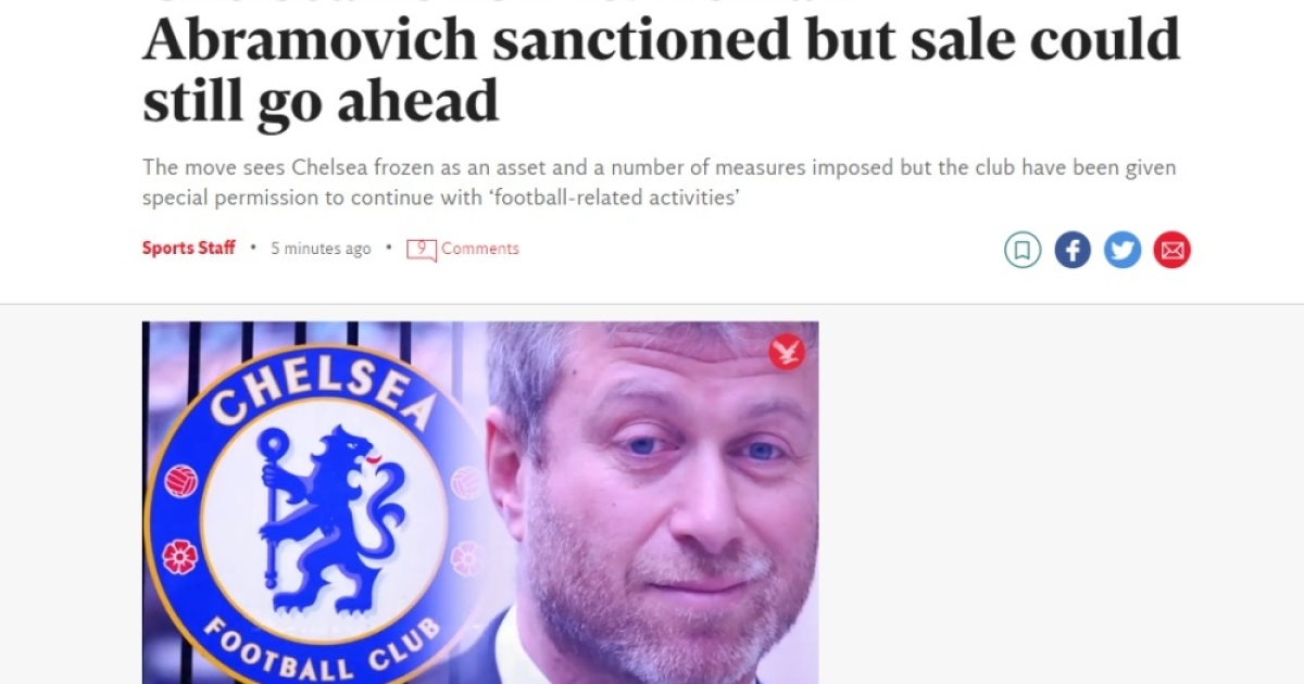 สำนักข่าวอิศรา (www.isranews.org) รายงานข่าวเกี่ยวกับการอายัดทรัพย์สินของผู้ที่เกี่ยวข้องกับประเทศรัสเซียในประเทศอังกฤษ ว่านายโรมัน อับราโมวิช เจ้าของสโมสรฟุตบอลเชลซี ที่ถูกลงโทษจากทางการประเทศอังกฤษว่าเกี่ยวข้องกับนายวลาดิเมียร์ ปูติน ประธานาธิบดีรัสเซียที่ได้สั่งให้รุกรานยูเครนนั้น มีรายงานว่านายอัยราโมวิชเป็นหนึ่งใน โอลิการ์ช (Oligarch)” (กลุ่มมหาเศรษฐีนักธุรกิจที่มีสายสัมพันธ์ใกล้ชิดกับประธานาธิบดีปูตินและการเมืองรัสเซีย) ที่ถูกต้องโทษให้อายัดทรัพย์สินและห้ามการเดินทาง ซึ่งบทลงโทษดังกล่าวถูกเผยแพร่เมื่อวันที่ 10 มี.ค. หลังจากที่รัฐมนตรีหลายรายนั้นถูกกดดันเป็นอย่างยิ่งว่าจะต้องลงโทษนายอับราโมวิช