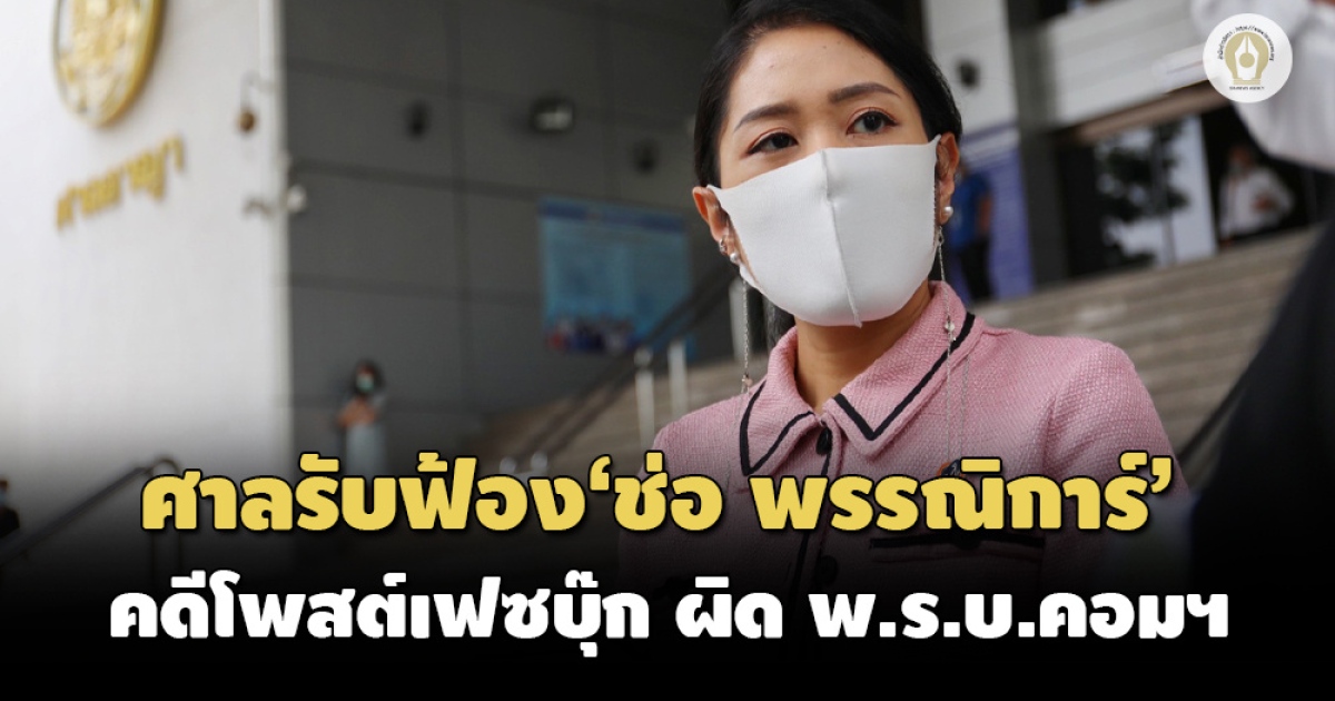 ศาลรับฟ้อง ‘ช่อ พรรริการ์’ คดีโพสต์เฟซบุ๊กเกี่ยวข้องกับสถาบัน สร้างความตื่นตระหนกตกใจให้กับประชาชน ผิด พ.ร.บ.คอมพิวเตอร์ วางหลักทรัพย์ 3 หมื่นบาท ศาลอนุญาตปล่อยตัวชั่วคราว นัด 25 เม.ย.สอบคำให้การและตรวจพยานหลักฐาน
