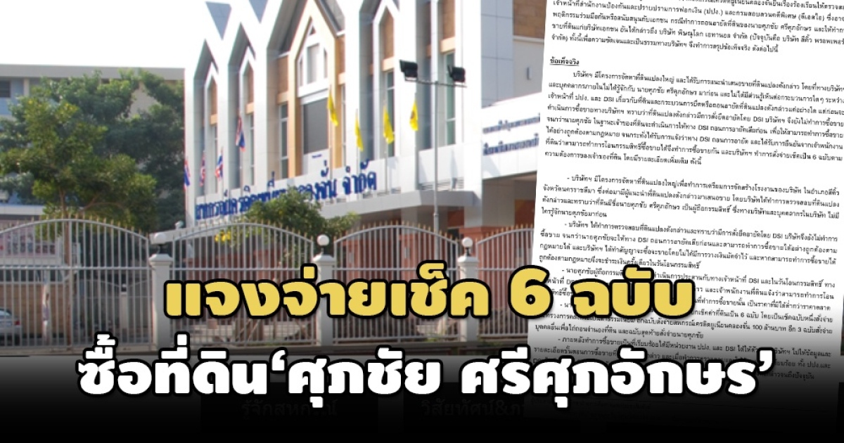 ‘กมธ.ป.ป.ช.’ แพร่เอกสารแจงข้อเท็จจริง กรณี ‘บ.พิษณุโลก เอทานอล’ แบ่งจ่ายเช็ค 6 ฉบับ ซื้อที่ดิน ‘ศุภชัย ศรีศุภอักษร’ มูลค่า 447 ล้าน ระบุ ‘ปปง.-DSI’ ไม่ท้วงติง-ไม่มีข้อสังเกตใดๆ