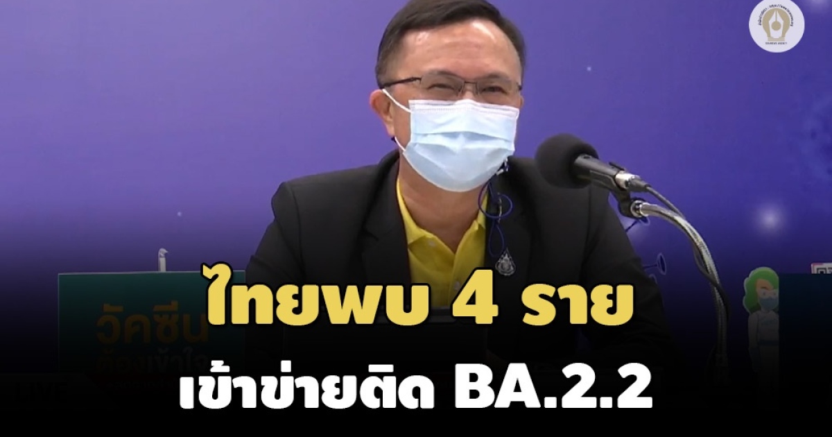 “ส่วนที่ไทยกำลังวิเคราะห์ว่า ใกล้เคียง BA.2.2 มี 4 รายนั้น เป็นต่างชาติ 1 ราย ที่เหลือเป็นคนไทย 3 ราย อาการไม่มีปัญหาอะไร และยังไม่ชัดว่าจะใช่หรือไม่ ขอรอผลวิเคราะห์เร็วๆนี้ ซึ่งตำแหน่งที่พบกลายพันธุ์ เป็นตำแหน่งสไปค์โปรตีน I1221T (S:I 1221T) คาดว่า 2-3 วันนี้จะทราบผลทั้งหมด ” นพ.ศุภกิจ กล่าว