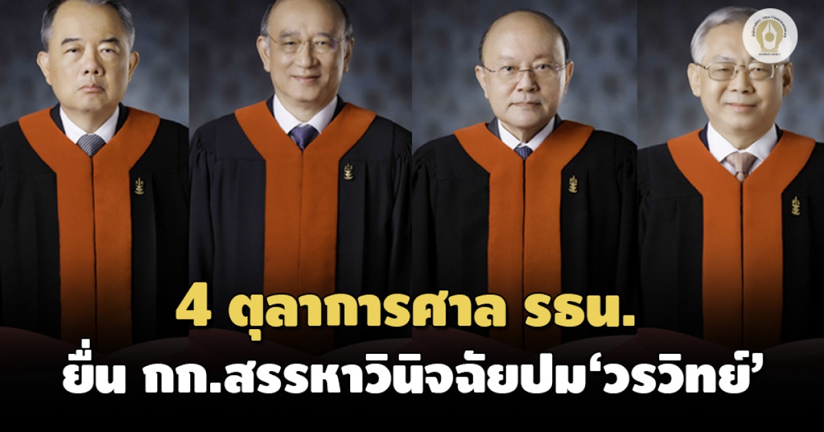 4 ตุลาการศาล รธน. ‘นครินทร์-ทวีเกียรติ-จิรนิติ-อุดม’ ลงชื่อยื่นคำร้องส่ง กก.สรรหาวินิจฉัยปม ‘วรวิทย์ กังศศิเทียม’ ประธานศาล รธน.อายุครบ 70 ปี เป็นผู้มีคุณสมบัติหรือลักษณะต้องห้ามเป็นเหตุให้พ้นจากตำแหน่งหรือไม่