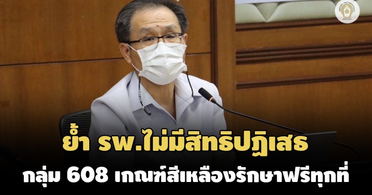 สธ.ย้ำกลุ่ม 608 ติดโควิด-19 กลุ่มอาการสีเหลือง เข้าเกณฑ์ UCEP Plus มีสิทธิ์เข้ารักษาในโรงพยาบาลฟรีทุกที่ ย้ำ รพ.ไม่มีสิทธิ์ปฏิเสธ เผยอัตราการครองเตียงระดับ 2 ขึ้นไปยังเพียงพอรองรับ