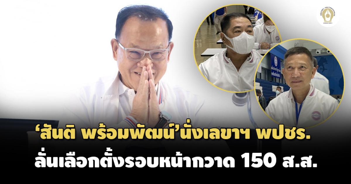 ประชุมใหญ่ พปชร.เลือก ‘สันติ’ นั่งเลขาฯ ‘พล.อ.ธัญญา เกียรติสาร – พล.อ.กฤษณ์โยธิน ศศิพัฒนวงษ์’ กรรมการบริหารพรรค ลั่นเลือกตั้งรอบหน้ากวาด 150 ส.ส.