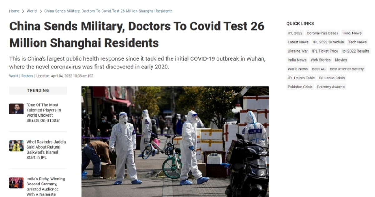 เรียบเรียงจาก:https://www.ndtv.com/world-news/coronavirus-china-sends-military-doctors-to-covid-test-26-million-shanghai-residents-2860833