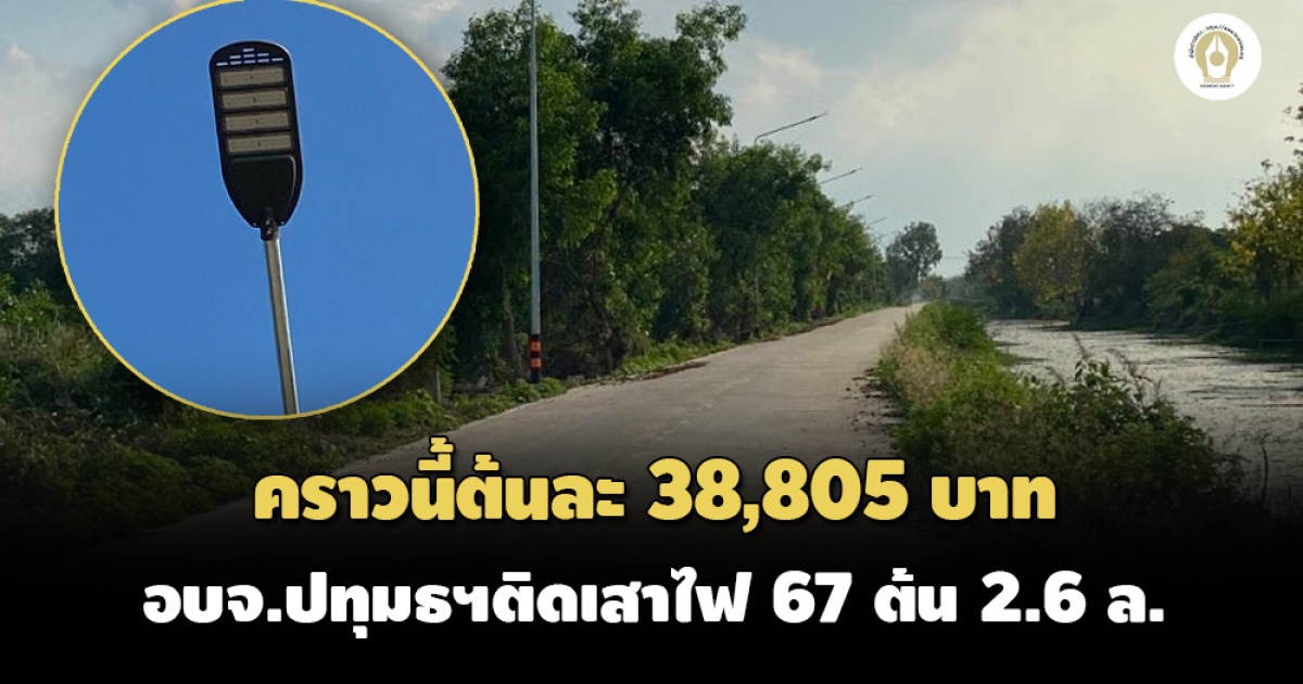 อีกแห่ง! อบจ.ปทุมธานี จ้างก่อสร้างโครงการติดตั้งไฟฟ้าสาธารณะ คราวนี้ 67 ต้น 2.6 ล้าน สายคลอง 13-14 อ.หนองเสือ โดยวิธีการคัดเลือก เอกชนรายเดิม ประกาศชื่อผู้ชนะหลังวันลอต 201 ต้นแค่วันเดียว ราคา เฉลี่ยต่อต้นถูกกว่า ลอต 210 ต้น