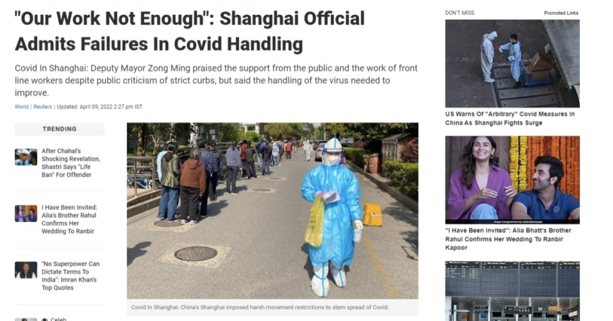 อนึ่งมีรายงานว่าทางกรุงปักกิ่งได้เข้ามาแทรกแซงการทำงานของเมืองแล้ว หลังจากที่พบว่าเมืองเซี่ยงไฮ้นั้นประสบความล้มเหลวในกระบวนการแยกผู้ติดเชื้อในขั้นตอนของการล็อกดาวน์ และกรุงปักกิ่งได้ยืนยันว่าประเทศจีนนั้นจะยังคงต้องปฏิบัติตามนโยบายโควิดเป็นศูนย์ต่อไปเพื่อไม่ให้ระบบสาธารณสุขต้องเอ่อล้นไปด้วยคนไข้