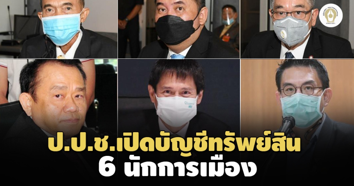 ป.ป.ช.เปิดทรัพย์สินนักการเมือง 6 คน มี 3 คน พ้น ส.ส. ‘วิโรจน์ ลักขณาอดิศร’ 52.41 ล้านบาท ‘สุพล ฟองงาม’ 77.96 ล้านบาท ‘สันติ กีระนันทน์’ 108.38 ล้านบาท อีก 3 คนเป็น ส.ส.ป้ายแดง ‘จักรพันธุ์ ปิยพรไพบูลย์’ 167.06 ล้านบาท ‘ชวน ชูจันทร์’ 10.95 ล้านบาท ‘สุพร ดนัยตั้งตระกูล’ 25.62 ล้านบาท