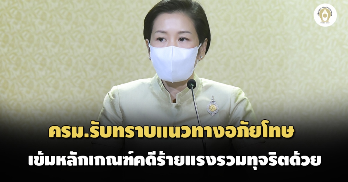 ครม.รับทราบแนวทางอภัยโทษ รับโทษอย่างน้อย 1 ใน 3 หรือ 8 ปี วางหลักเกณฑ์เข้มคดีร้ายแรงรวมทุจริตด้วย ส่วน พ.ร.ฏ.อภัยโทษปี 64 ไม่มีความจำเป็นในการแก้ไข
