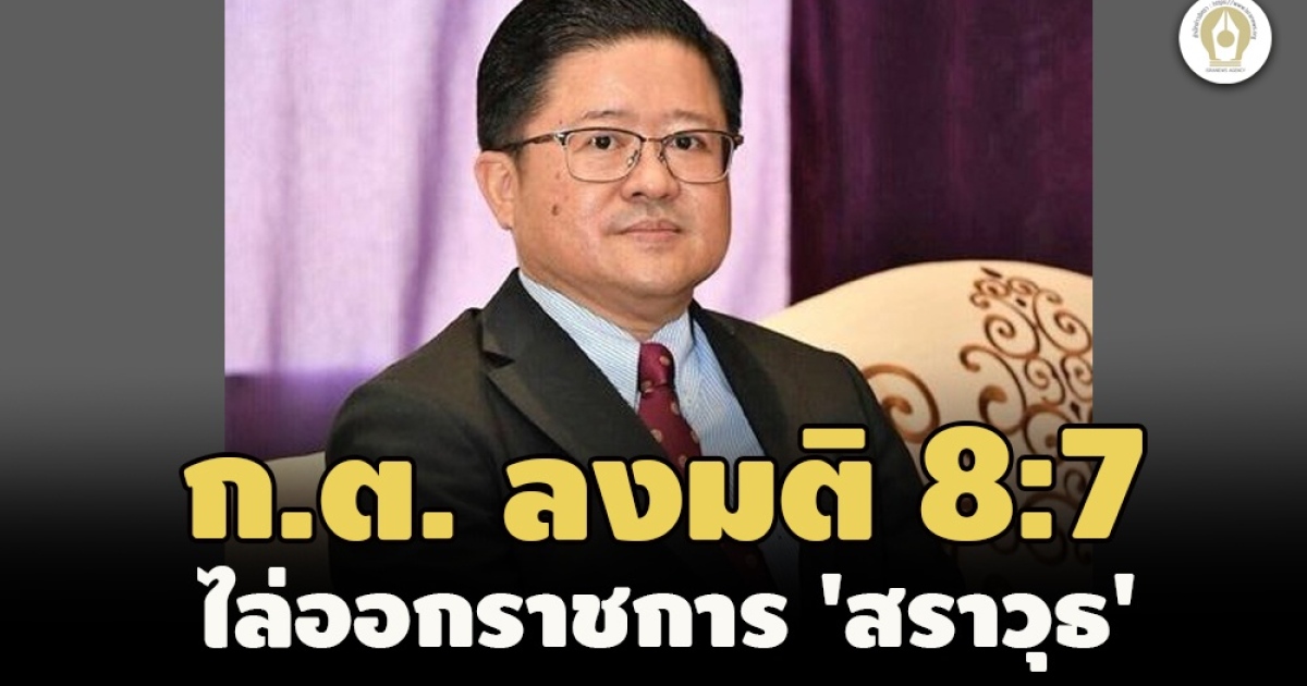 - ให้รอผลสอบวินัยร้ายแรงก่อน! มติ ก.ต. 8 ต่อ 7 ไม่พักราชการ 'สราวุธ' คดีศาลพระโขนง