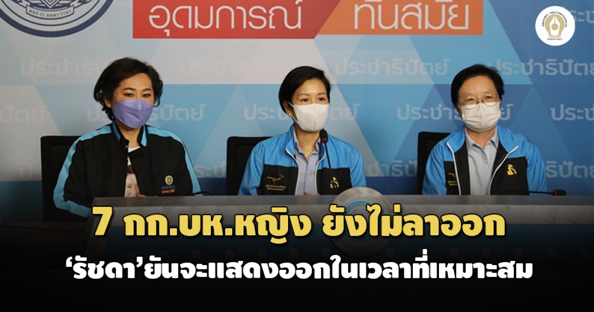 ‘รัชดา ธนาดิเรก’ แถลงเสียงสั่นเครือยืนยัน 7 กก.บห.หญิง ไม่ลาออกจาก ปชป. ย้ำพรรคไม่ได้ทำผิด แต่มีคนทำผิด ไม่ปฏิเสธความรับผิดชอบ พร้อมแสดงออกในเวลาที่เหมาะสม น้อมรับทุกเสียงวิพากษ์วิจารณ์