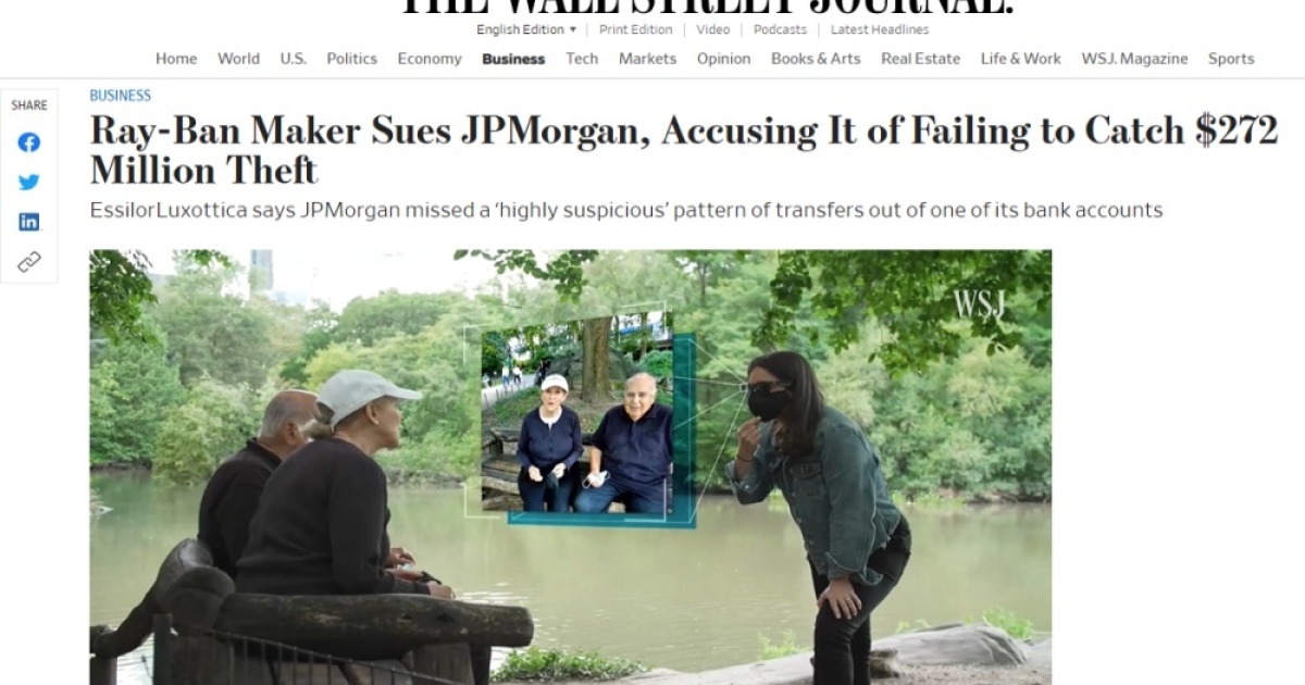 เรียบเรียงจาก:https://www.wsj.com/articles/ray-ban-maker-sues-jpmorgan-accusing-it-of-failing-to-catch-272-million-theft-11651011067