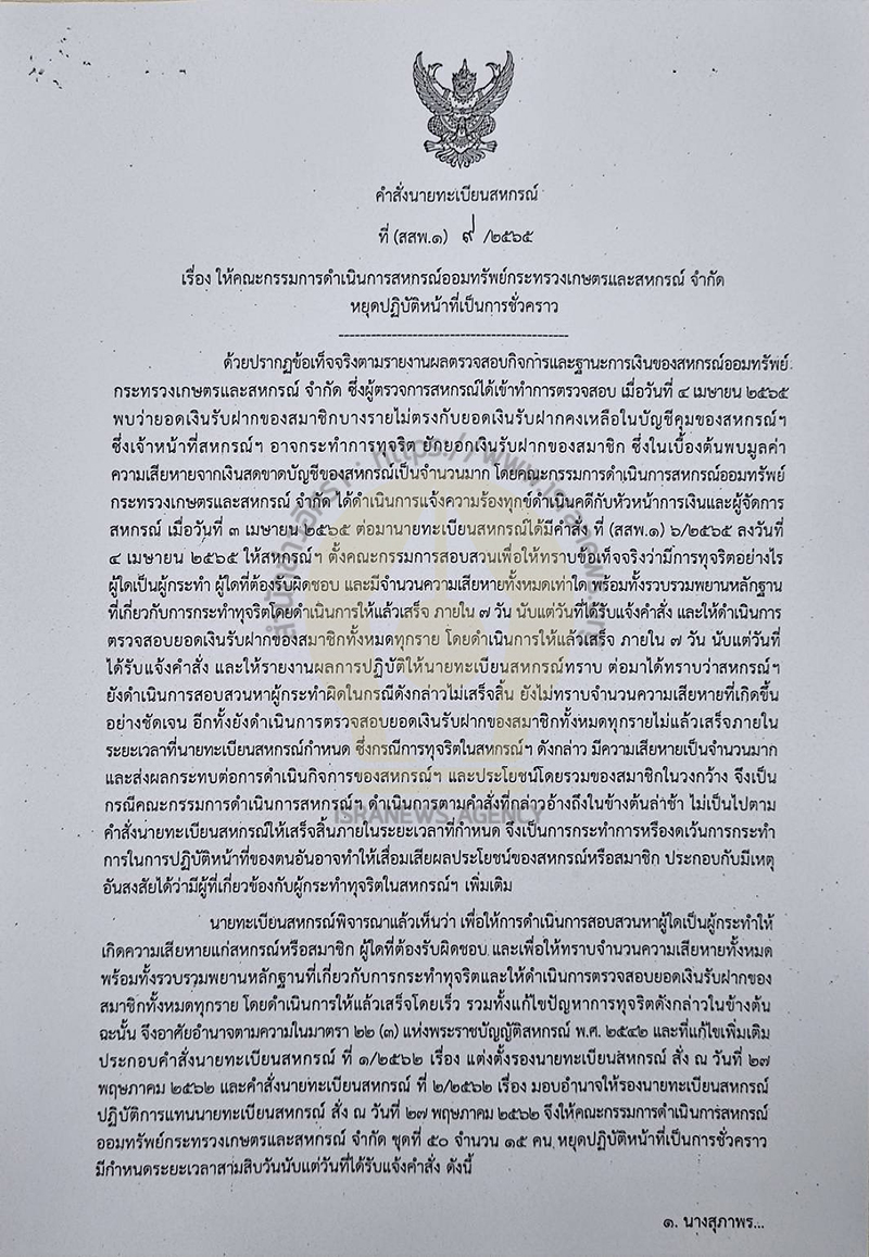 - โชว์คำสั่งสหกรณ์ก.เกษตรฯ สอบยักยอก 200 ล.-เปิดชื่อ 2 ผู้ต้องสงสัยหายตัวตั้งแต่ 28 มี.ค. (5)
